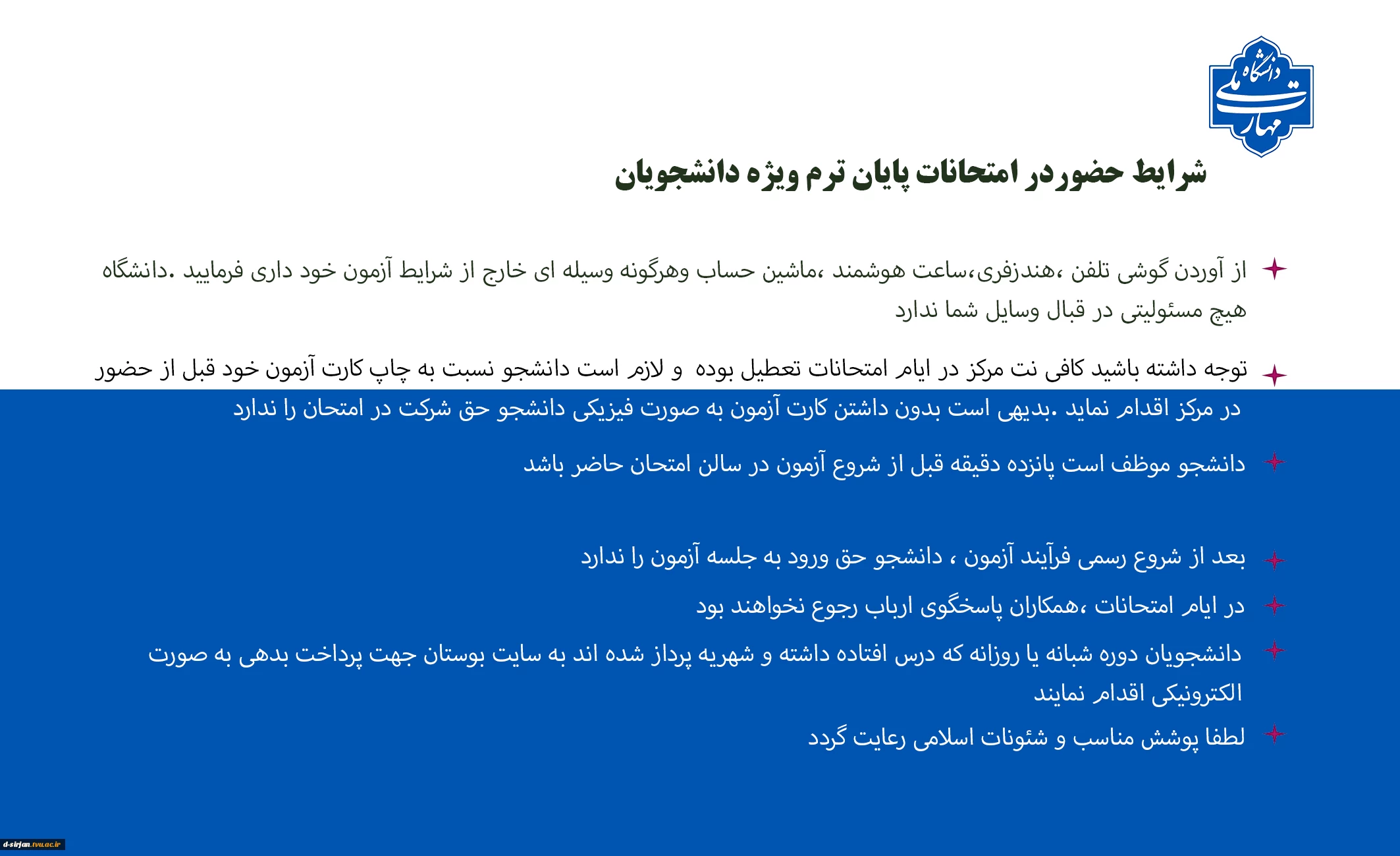 شرایط حضور دانشجویان در آزمون 2