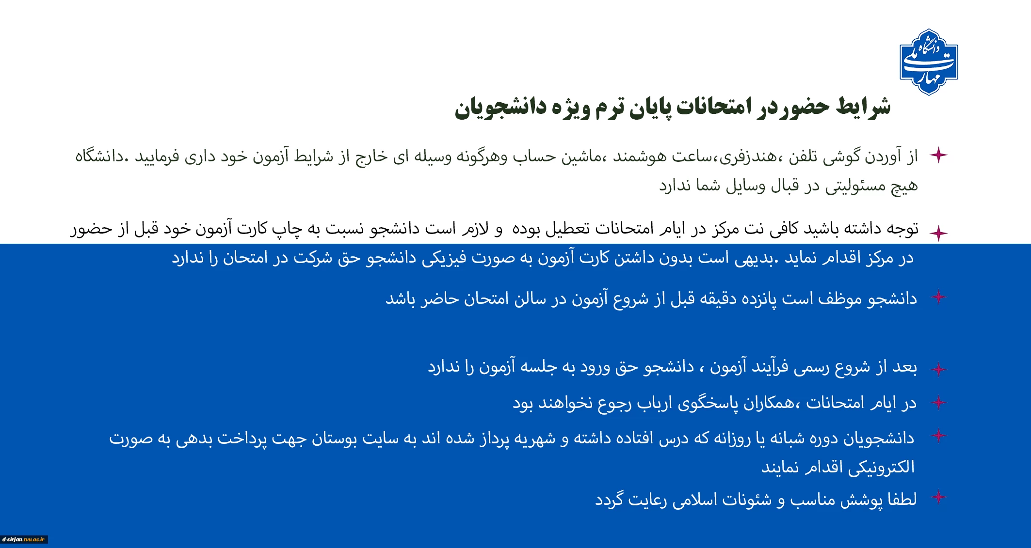 شرایط حضور دانشجویان در آزمون 3